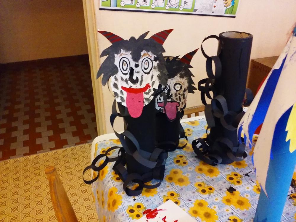 I u nás ve škole nás příjde navštívit Mikuláš s čerty a anděly a abychom jim udělali radost, vytvořili jsme jim výstavku.